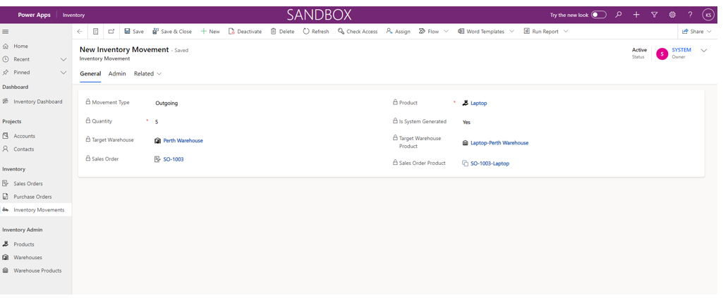 If the movement is created by the system, then it will be marked as Yes in is System Generated field otherwise it will be marked as No.
