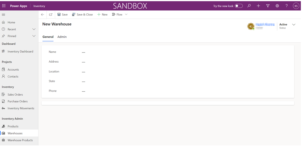 New warehouses can be added by users by clicking on the “+New” button on top on the warehouse page and provide the mandatory details such as